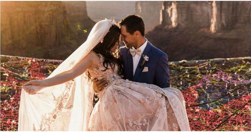 Ռայան Ջենքսը և Քիմբերլի Ուեգլինը միմյանց հանդիպել ու սիրահարվել, ապա նշանադրվել էին Յուտա նահանգում գտնվող մի անապատի շրջակայքում։ Նրանք որոշեցին ամուսնությունը ևս անցկացնել հենց այդտեղ՝ ձորի վրա՝ մի ափից մյուսը փռելով ցանցից գործված պարան։ Հենց այդ պարանե հարթակի վրա էլ՝ 121 մետր բարձրության վրա, տեղի ունեցավ ողջ պսակադրությունը։