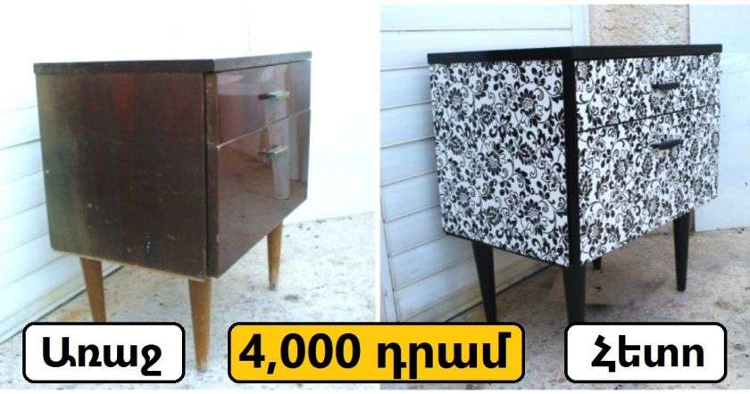 Բոլորս էլ տանն ունենք հին կահույքի կտորներ, որոնք, չնայած այնքան էլ նորաոճ տեսք չունեն, ափսոսում ենք դեն նետել՝ լինի դա տատիկից նվեր ստացած զգեստապահարան, թե հնաոճ աթոռ։ Իսկապես, ամենևին էլ պետք չէ ազատվել հին կահույքից ու նորը գնել՝ ծախսելով հավելյալ գումար, փոխարենը կարող եք հենց ձեր իսկ ձեռքերով դրանց նոր շունչ հաղորդել։