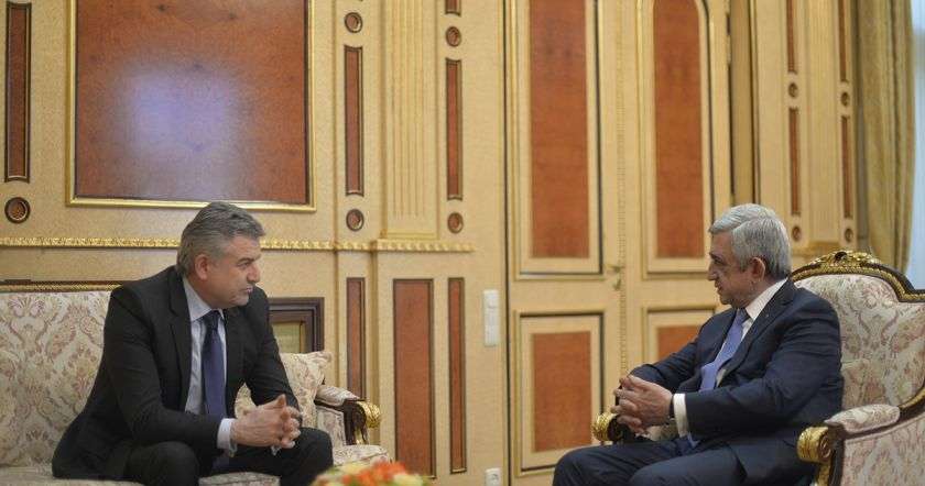 Նախագահ Սերժ Սարգսյանն այսօր ընդունել է վարչապետ Կարեն Կարապետյանին: Վարչապետը Հանրապետության Նախագահին զեկուցել է կառավարության գործունեության արդյունքները և հակիրճ ամփոփելով՝ ընդգծել, որ կառավարության առջև դրված բոլոր մակրոխնդիրները կատարված են: Նախագահ Սարգսյանը և վարչապետ Կարեն Կարապետյանը հանդիպման ժամանակ անդրադարձել են նաև երկրի տնտեսության զարգացման երկարաժամկետ ծրագրերին ու թիրախներին, որոնք պարբերաբար քննարկվել են Հանրապետության Նախագահի մոտ խորհրդակցությունների ժամանակ և որոնց համար Հայաստանի Հանրապետական կուսակցությունը ստանձնել է պատասխանատվություն: