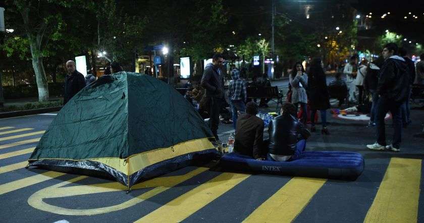 Սերժ Սարգսյանի հնարավոր վարչապետության դեմ պայքարող «Իմ քայլը» շարժման մասնակիցները վրան են տեղադրել Մաշտոցի պողոտայում՝ Ֆրանսիայի հրապարակի մոտ։