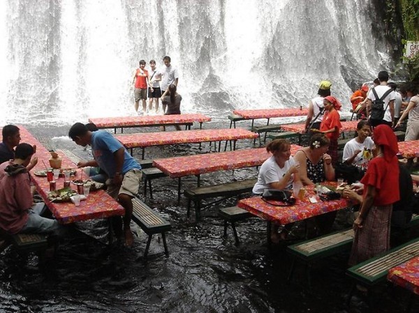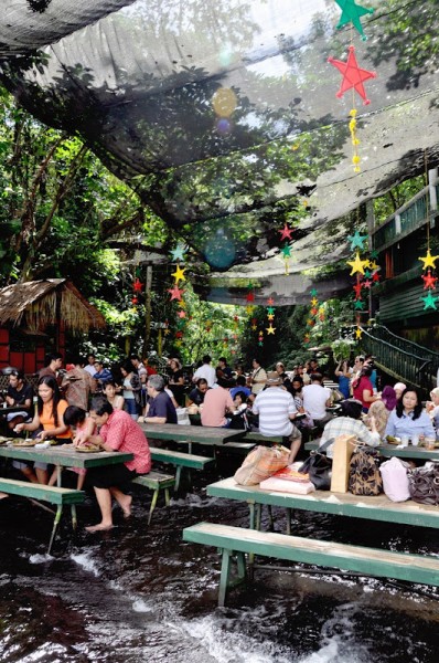 Բամբուկե սեղանները ընդամենը մի քանի մետր հեռավորության վրա են գտնվում Լաբասին տեղական ջրվեժի թափվող ջրերի կասկադից: Այցելուներին հյուրասիրում են տեղական խոհանոցի ուտեստներով, ինչպիսիք են ձուկ, կարրի միս ու բրինձ: Այդ պահին հաճելի եւ փափուկի ջրային հոսքը մերսում է նրանց ոտքերը: Մի լավ ճաշելուց հետո ցանկացած այցելու կարող է ազատ լողալ բյուրեղյա մաքուր, տաք ջրերում: