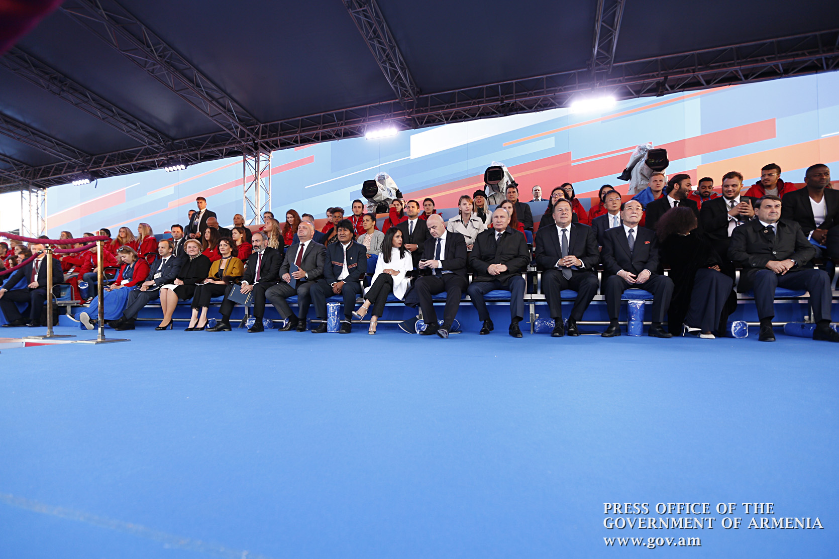 Միջոցառմանը ներկա են եղել նաև ՌԴ նախագահ Վլադիմիր Պուտինը և մի շարք այլ պետությունների նախագահներ ու կառավարությունների ղեկավարներ, ովքեր ժամանել են Մոսկվա՝ ֆուտբոլի Աշխարհի առաջնության բացման հանդիսավոր արարողությանը ներկա գտնվելու նպատակով: