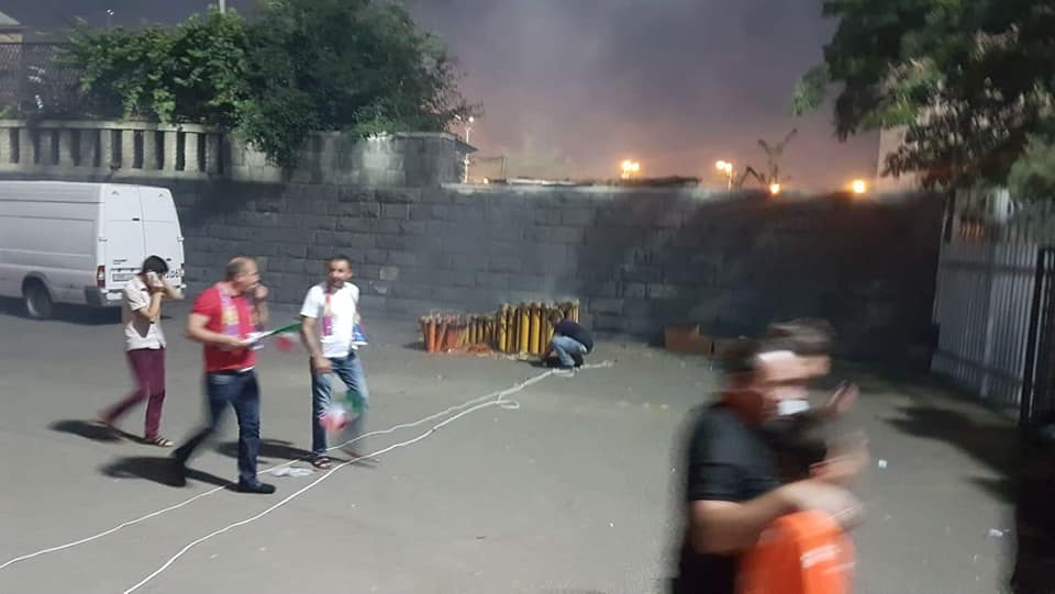 Nana NG Gndoyan ջան, այսօր վայելեցինք ֆուտբոլը, thanks to Aren Apikyan and Marianna Vasilyan։ Մարզադաշտից դուրս գալիս ничего не предвещало беды։ Հանկարծ մարզադաշտի տարածքը վերածվեց ճակատամարտի դաշտի. ճիշտ մեր կողքին 10 մ հեռավորության վրա սկսեցին որոտալ հրանոթներն, ու խոշոր հրավառություն սկսվեց: Անկանոն սկսեցին աղաղակել ու բարձրացրած ձեռքերով այս ու այն կողմ վազել ինչ-որ մարդիկ՝ մարզադաշտից դուրս եկողնորին հորդորելով հետ գնալ (տեսանյութում ամեն ինչ պարզ երևում է):