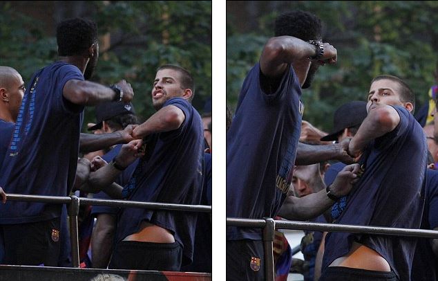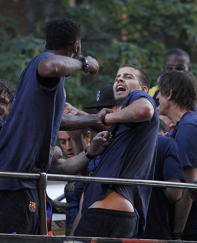 «Բարսելոնա»-ի ֆուտբոլիստներ Ալեքս Սոնգն ու Ժերար Պիկեն կռվել են չեմպիոնական ավտոբուսով քաղաքով շրջագայելու ժամանակ: Տհաճ միջադեպը տեղի է ունեցել երկրպագուների ներկայությամբ: