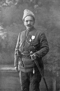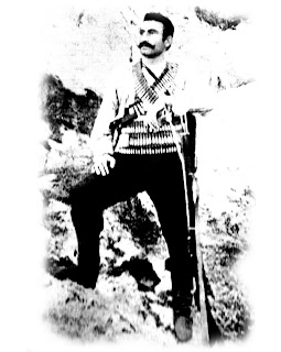 Իր թեւաւոր եւ փէշաւոր հագուստին կապուստին թափթփածութիւնը, իր խոշոր խոշոր աչքերը, արեւէն սեւցած դէմքի մը խոռոչներէն մէջ լեցուն ատելութեամբ եւ արիւնով, խոզի մազերուն պէս քստմնած իր պեխերը կ՛աւելցնէին իր դէմքին վայրագ գիծերուն խստութիւնը: