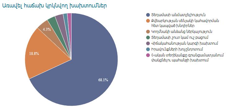 Հիմնականում խախտումները վերաբերում են տեղամասի անմատչելիությանը, քվեարկության սենյակի կահավորմանը, կողմնակի անձանց ներկայությանը:
