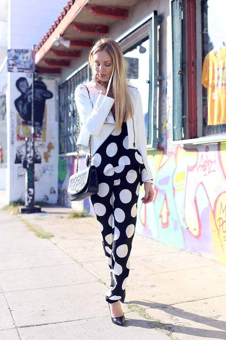 Այսօր սիրով ներկայացնում եմ Ձեզ արդեն ծանոթ Լոս Անջելեսում բնակվող ֆեշըն բլոգգեր Շի Մարիից 2 լուք: Դրանք իհարկե պատահաբար ընտրված լուքեր չեն: Եթե հիշում եք, վերջին 2 փոսթը նվիրված էր զոլավոր տրենդին, և անկասկած կգտնվեն մարդիկ, որոնք արդեն հոգնել են վիրտուալ և իրական աշխարհում հանդիպող զոլավոր հագուստի առատությունից: Ուստի որոշեցի սև ու սպիտակի սիրահարներին առաջարկել զոլավոր հագուստի ալտերնատիվ տարբերակներ: Լուքերից առաջինը յուրօրինակ մինիմալիստական ֆլորալ պրինտով զգեստ է, որին շատ հաջող լրացումներ են հանդիսացել վինտաժային ծավալուն սև Chanel պայուսակը և հարթակով (танкетка) Pierre Hardy սանդալները: Երկրորդ լուքը միշտ ակտուալ одежда в горошек (ներեցեք ռուսերենի համար, սակայն կարծում եմ «սիսեռ» տերմինը ոչ մի կերպ չի սազում)՝ լրացված փոքրիկ սև պայուսակով և նրան համապատասխան նուրբ սև բարձրակրունկ կոշիկներով: Եթե առաջինը բավական զվարթ լուք է, ապա երկրորդն ավելի լուրջ է և էլեգանտ: Դիտենք լուքերը և հիանանք: