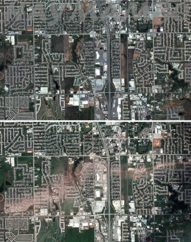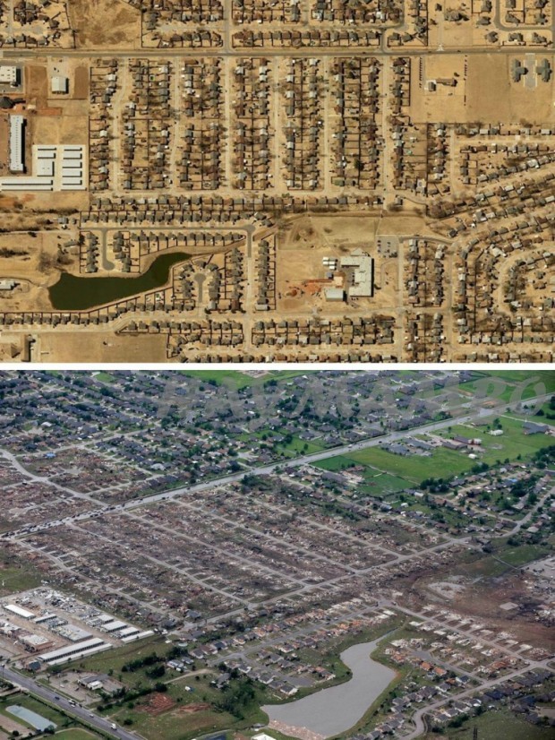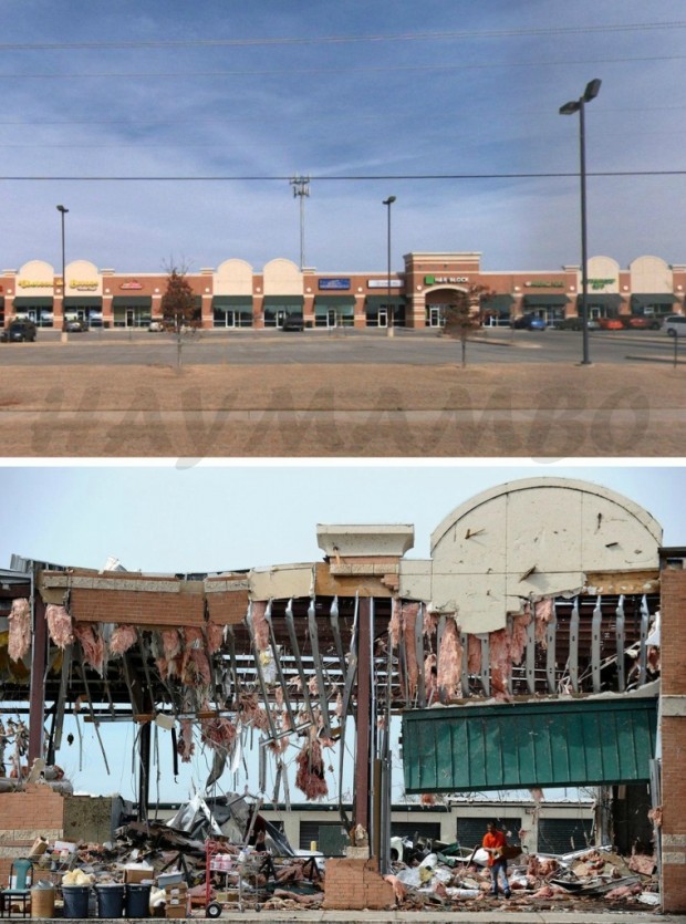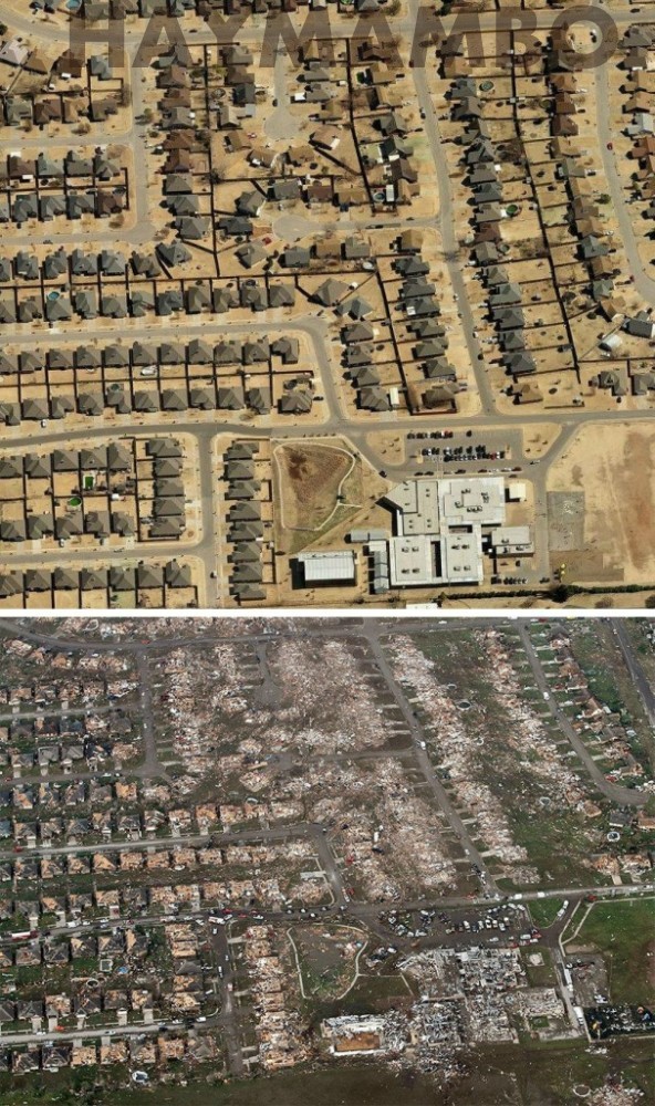 Օքլահոմաի տեղական ալիքներից մեկի լրագրողները կատարել էին համեմատություն, Մուռ քաղաքը ուժեղ փոթորկից առաջ և հետո: