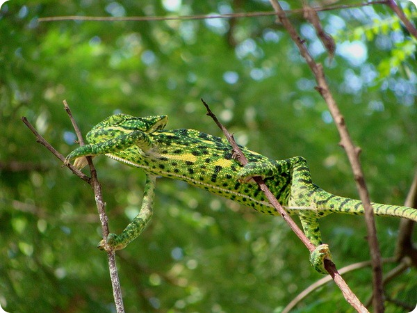 Հնդկական քամելեոնը (լատինական Chamaeleo zeylanicus) միաժամանակ կարող է նայել տարբեր ուղղություններով, աչքերը անկախ միմյանցից շարժել, կայծականման «կրակել» երկար եւ կպչող լեզվով, իհարկե նաեւ փոխել գույնը: Հնդկական քամելեոնի ամբողջ մարմինը ծածկված է բլթակներով, իսկ պոչի երկարությունը, որով նա շնորհալի կերպով կառչում է ճյուղերից, ավելի է գլխի եւ մարմնի ընդհանուր երկարությունից.