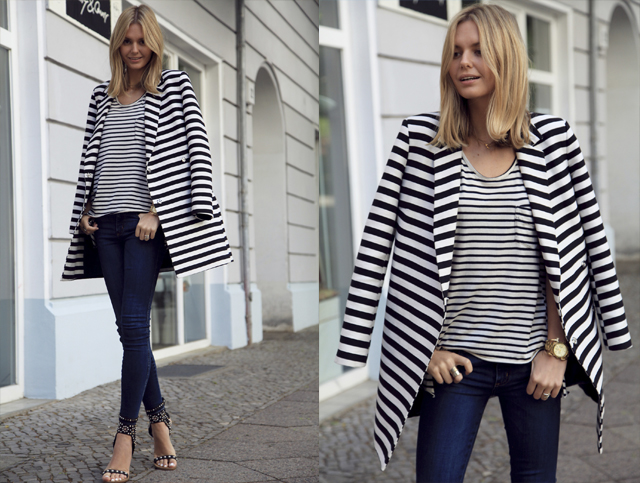Ինչպես և կարելի էր ենթադրել երեկվա փոսթի վերնագրից, այսօր խոսքը դարձյալ գնալու է զոլերի մասին: Ամեն օր զանազան ֆեշըն բլոգներ բացելիս սպասում եմ ինչ-որ նորության, սակայն ամեն անգամ ինձ սպասում է բլոգեր զոլավոր հագուստով: Եվ ես չեմ կարող անվանել այս երևույթն այլ կերպ, քան զոլավոր մոլուցք: Այո, այո: Երբ դար առաջ Ալյասկայում սկսվեց ոսկու տենդը, մարդիկ շտապում էին իրենց ոսկու ետևից, իսկ այժմ մարդիկ նույն մոլուցքով շտապում են խանութներ ձեռք բերելու զոլավոր հագուստ: Այսօր նկարների ընտրանու մեջ ընդգրկել եմ ավելի շատ ուղղահայաց զոլերով լուքեր, ինչն ավելի մեծ մասսայականություն է վայելում, քան հորիզոնականը: Գրեք խնդրեմ մեկնաբանություններում՝ ինչ կարծիքի եք մոլորակը պատած այս ալիքի մասին, կրո՞ւմ եք արդյոք ինքներդ, թե՞ որպես ունիվերսալ հագուստ գտել եք ալտերնատիվ տարբերակ: