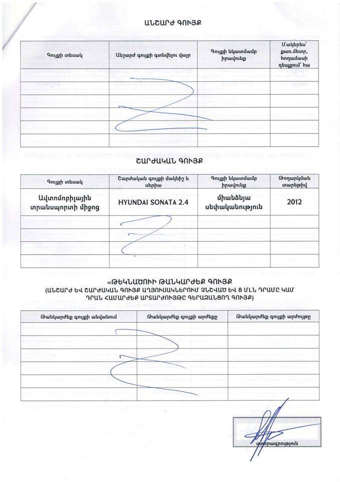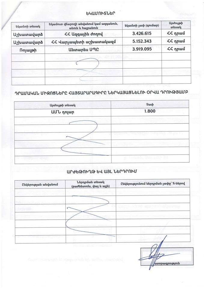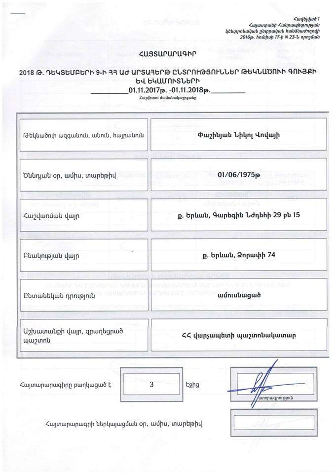 Ստորեւ ներկայացնում եմ հայտարարագիրս, որ ԿԸՀ է ներկայացվել դեռեւս նոյեմբերի 24-ին՝ օրենքով սահմանված ժամկետում։