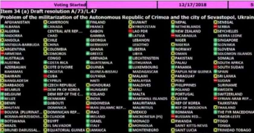 Ինչպես նշում է lenta.ru-ն, բանաձևին կողմ է քվեարկել 66, դեմ՝ 19 երկիր, որոնց թվում է նաև Հայաստանը: Մինչդեռ հարևան Վրաստանը կողմ է քվեարկել, իսկ Ադրբեջանը ձեռնպահ է մնացել: