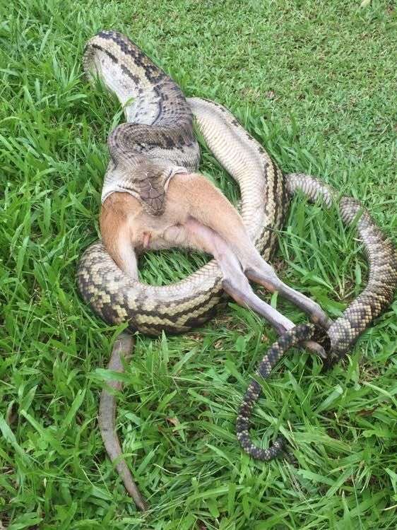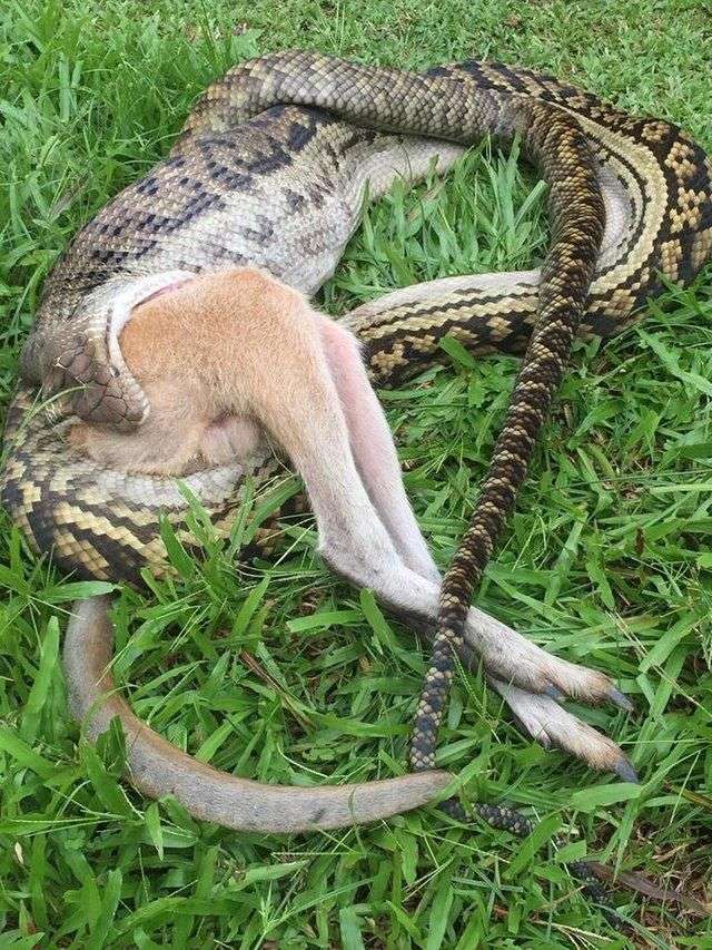 Ավստրալիայի Քվինսլենդ նահանգում ամետիսյան պիթոնը (ավստրալական ամենամեծ օձը, որը պահպանվում է օրենքով) հարձակվել և խեղդամահ է արել 20 կիլոգրամանոց կենգուրուին։ Եթե պիթոնին չվախեցնեն, որի ժամանակ նրանք իրենց զոհին ետ են տալիս, ապա նա մի քանի ամսով կհագենա։