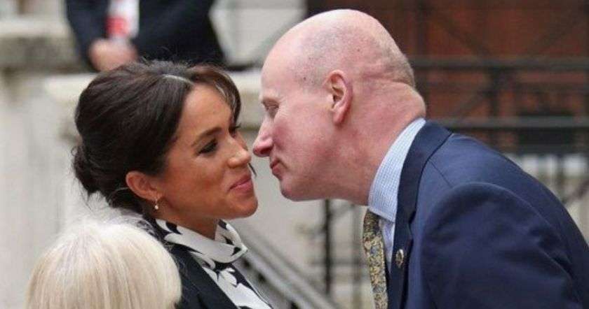 Մեգանին դիմավորել է Եղիսաբեթ II թագուհու նախկին անձնական քարտուղարը՝ լորդ Գեյդթը, որն այժմ Queen’s Commonwealth Trust հիմնադրամի ղեկավարն է: Բարոն Քրիստոֆեր Գեյդթը, ինչպես գրում են լրատվամիջոցները, Մեգանին ողջունել է բավականին անհարմար համբույրով: