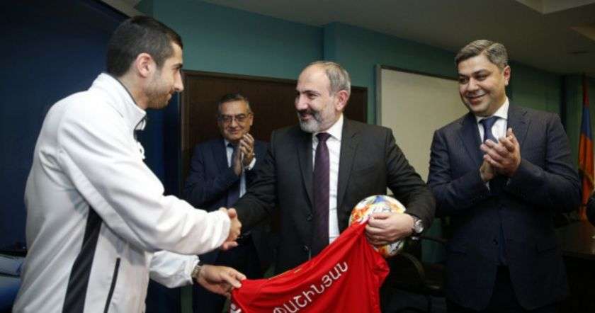 Հայաստանի հավաքականի ավագ Հենրիխ Մխիթարյանը Նիկոլ Փաշինյանին է նվիրել հավաքականի մարզաշապիկն ու ֆուտբոլիստների ստորագրությամբ գնդակ: