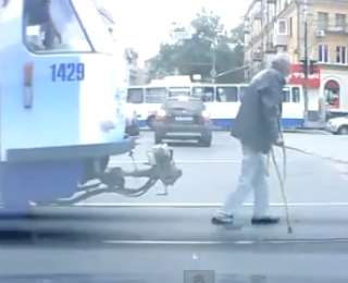 Ուկրաինա, Դներոպետրովսկ, Մարքսի եւ Արտեմի փողոցների խաչմերուկ: Պապիկը բոմժ է եւ հիմար չէ բոլորովին, սիրում է վարորդների ներվերի հետ խաղալ, եթե վերջիններս չեն թողնում տրամվայի ներսում մուրացկանություն անել: