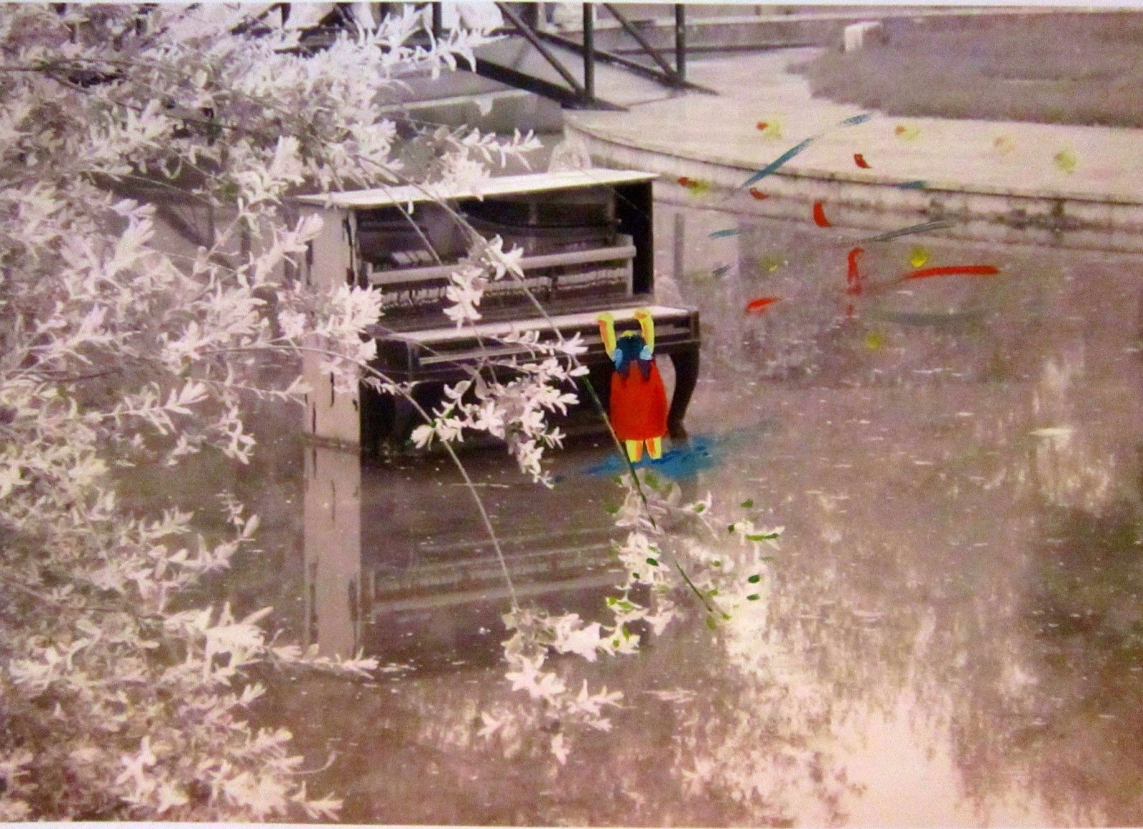Կիսախարխուլ դաշնամուրի երազանքը... Լճակի կենտրոնում` բոլորի ուշադրության կենտրոնում, բազմել է դաշնամուրը, նա, ով իր մեկ ձայնով լռեցրել է հազարավոր հանդիսատեսների, նա, ում առաջ խոնարհվել են հայտնիներ... Հիմա նա աղերսում է գեթ մեկ հնչյուն` կանգնած լճակի կենտրոնում: Ես կնկարեմ քո ձայնը, որ սփռվի ամբողջ նկարով և պայթի երկնքում...