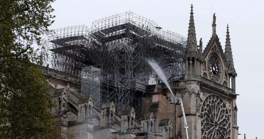 Մասնավորապես France24-ը գրում է, որ ապրիլի 15-ի երեկոյան սկսված հրդեհի հետևանքով փլուզվել է հանրահայտ աշտարակը, սակայն հրշեջների անձնուրաց աշխատանքի շնորհիվ շինության հիմնական մասը հաջողվել է փրկել:
