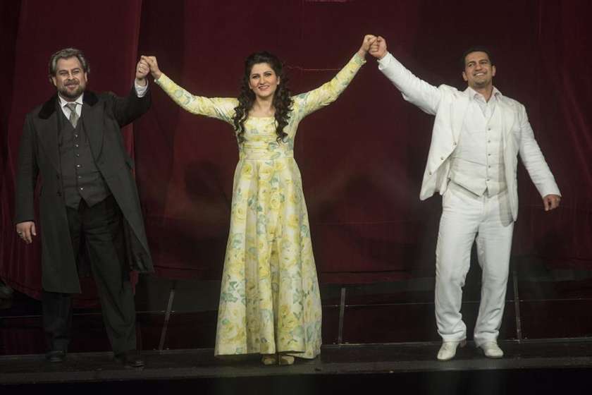 Բեռլինում հայ մեծանուն երգիչ Խաչատուր Բադալյանի(Ալֆրեդ) և ադրբեջանցի երգչուհի Դինարա Ալիևայի(Վիոլետա) սքանչելի կատարմամբ Տրավիատայի ավարտը՝ուղեկցվող ծափողջույնների ներքո: Սուտի ազգայնականներին արգելվում է նայել: