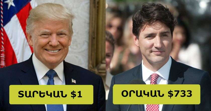 Մյուսների աշխատավարձերը միշտ էլ մարդկանց մոտ հետաքրքրություն են առաջացնում, սակայն դրա մասին տվյալներով հաճախ չեն կիսվում անգամ ընկերները։ Իսկ ահա աշխարհի տարբեր երկրների ղեկավարների աշխատավարձերի չափն ամենևին էլ գաղտնիք չէ. չէ՞ որ հաճելի է իմանալը, որ Դոնալդ Թրամփը մեկ տարում ավելի քիչ աշխատավարձ է ստանում, քան Դուք՝ մեկ օրում։