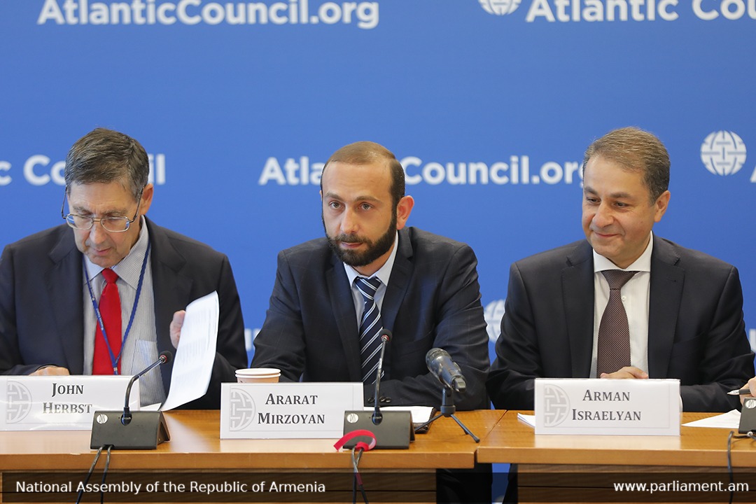 Աշխատանքային այցով Ամերիկայի Միացյալ Նահանգներում գտնվող Ազգային ժողովի նախագահ Արարատ Միրզոյանը հուլիսի 15-ին Atlantic Council կենտրոնում հանդես է եկել ելույթով՝ նվիրված Թավշյա հեղափոխությունից հետո Հայաստանում տեղի ունեցած փոփոխություններին եւ զարգացման հեռանկարներին: