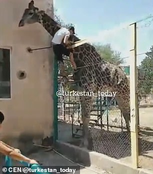 Ղազախստանի կենդանաբանական այգու հարբած այցելուն բարձրացել է ցանկապատի վրա և նստել ընձուղտի վրա, գրում է Daily Mail-ը: