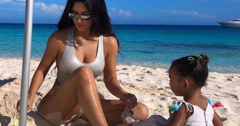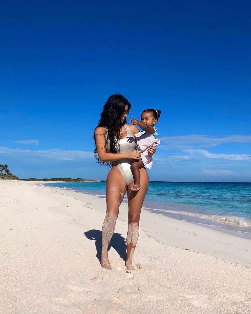 Լուսանկարներում 38-ամյա Քիմը պատկերված է իր դստեր հետ արծաթագույն լողազգեստով։ Օգտատերերի ուշադրությունը գրավել է ռետուշի անհեթեթ սխալները։ Լուսանկարներից մեկում, փորձելով մեծացնել իր ազդրերը, Քարդաշյանը պատահաբար թեքել է հորիզոնի գիծը, իսկ մյուսում ոտքին անբնական ձև է տվել: