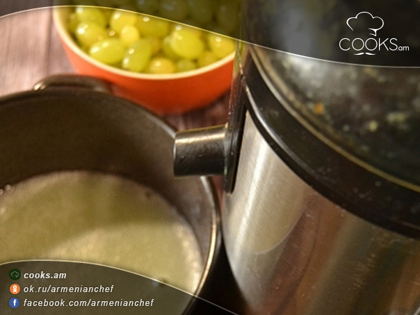 2. Այնուհետև խաղողի հյութը հյութաքամիչով քամում ենք։