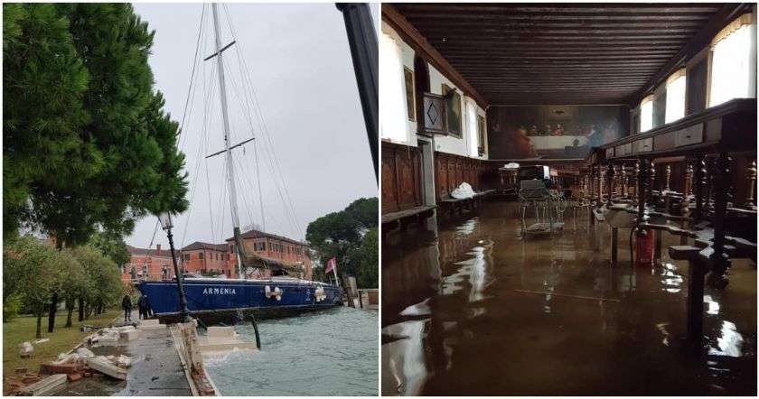 Վենետիկը գրեթե ամբողջովին ջրի տակ է այն բանի հետևանքով, որ Վենետիկի ծովածոցի ջրի մակարդակը բարձրացել է 1,87 մետրով: Դա պայմանավորված է տևական հորդառատ անձրևներով։