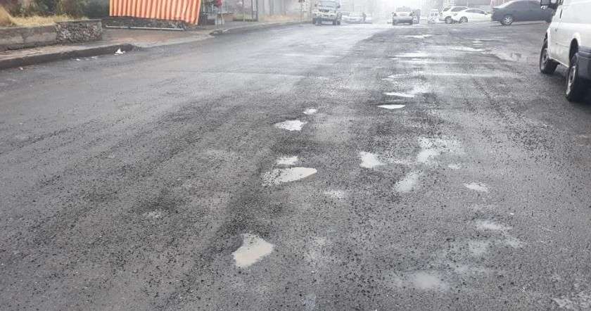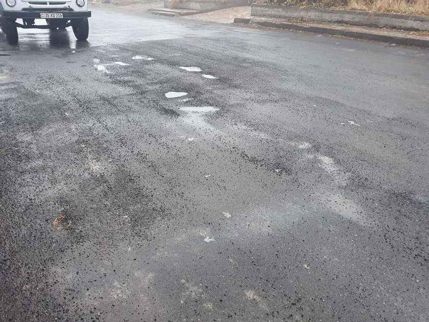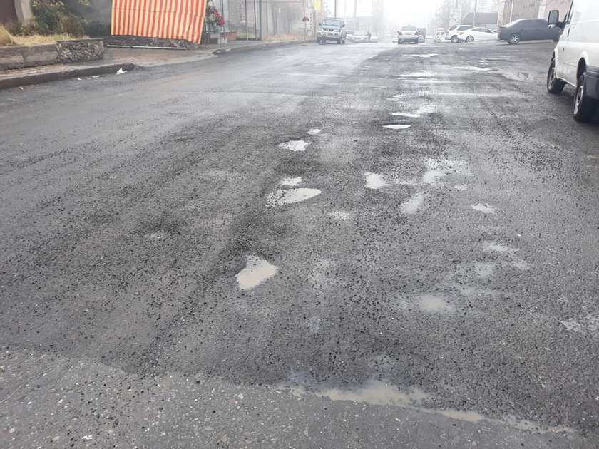 Սա Տիչինայի փողոցի՝ դեպի 4րդ գյուղ տանող ճանապարհի մի մասն է։Այս ճանապարհի նորոգման աշխատանքներից դեռ մեկ ամիս չի անցել,բայց ունենք այս պատկերը,որը նշանակում է,որ կան ընկերություններ,որոնք շարունակում են մսխել պետության փողերը։