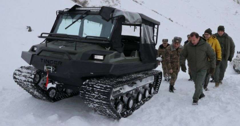 Այցի շրջանակում պաշտպանական գերատեսչության ղեկավարը ներկա է գտնվել բարդ եղանակային պայմաններում նոր սերնդի թրթուրավոր ձնագնացների փորձարկմանը և դիտարկել դրանց տեխնիկական հնարավորությունները: