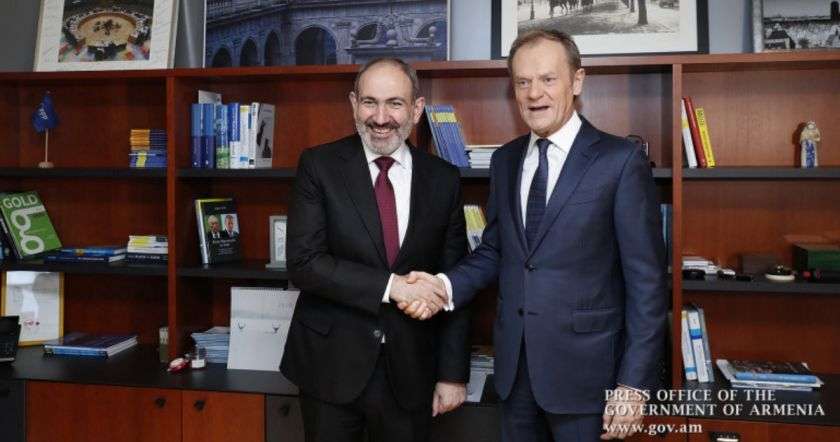 Ողջունելով վարչապետին` Դոնալդ Տուսկը նշել է. «Պարոն վարչապետ, ուրախ եմ ողջունել Ձեզ իմ նոր պաշտոնում, բայց հին ավանդական ընկերությամբ: Եվ խոսքը ոչ միայն Ձեր, այլև Հայաստանի հետ մեր ավանդական բարեկամության մասին է: Դուք կարող եք ինձ վրա հույս դնել իմ նոր պաշտոնում»: Դոնալդ Տուսկն ընդգծել է, որ Եվրոպայում, այդ թվում տեղի հանրության և քաղաքական գործիչների շրջանում ՀՀ նոր իշխանությունների և անձամբ ՀՀ վարչապետի նկատմամբ առկա է բարձր վստահություն, ինչը քաղաքական կարևորագույն կապիտալ է: