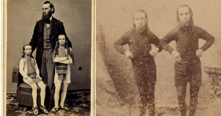 1830-ականներին Հիրամ և Բարնի Դևիս եղբայրները ծնվեցին ԱՄՆ Օհայո նահանգում: Երկուսն էլ տառապում էին անհայտ հիվանդությամբ, որի պատճառով ողջ կյանքում երեխայի արտաքին են ունեցել: