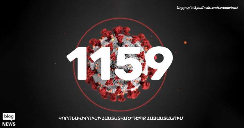 Ըստ ՀՀ ԱՆ Հիվանդությունների վերահսկման և կանխարգելման ազգային կենտրոնի՝ ապրիլի 14-ի ժամը 11:00-ի դրությամբ իրականացված կորոնավիրուսային հիվանդության (COVID-19) թեստավորման արդյունքում Հայաստանում վարակվածների թիվը հասել է 1159-ի, ունենք առողջացման 358, մահվան՝ 18 դեպք, փաստացի բուժվողները 783-ն են, բացասական թեստեր՝ 9632:
