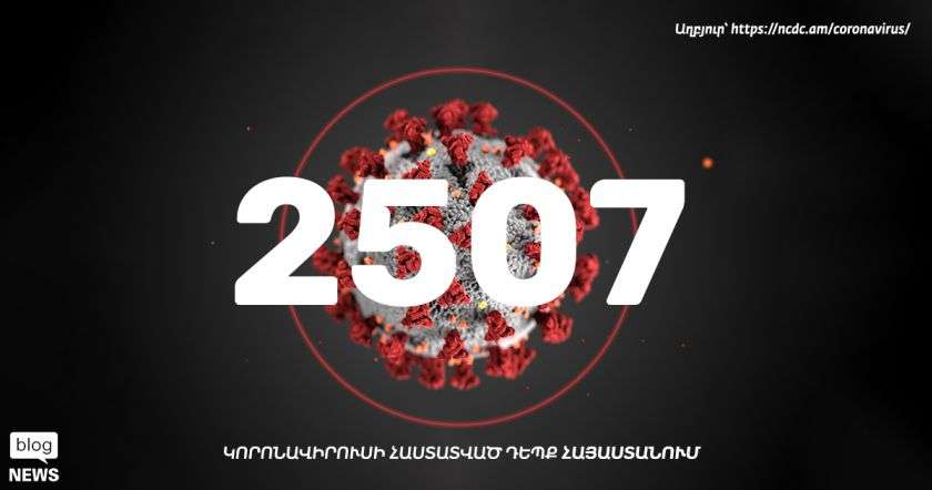 Ըստ ՀՀ ԱՆ Հիվանդությունների վերահսկման և կանխարգելման ազգային կենտրոնի՝ մայիսի 4-ի դրությամբ իրականացված կորոնավիրուսային հիվանդության (COVID-19) թեստավորման արդյունքում Հայաստանում վարակվածների թիվը հասել է 2507-ի, ունենք առողջացման 1071, մահվան՝ 39 դեպք, փաստացի բուժվողները 1393 -ն են։