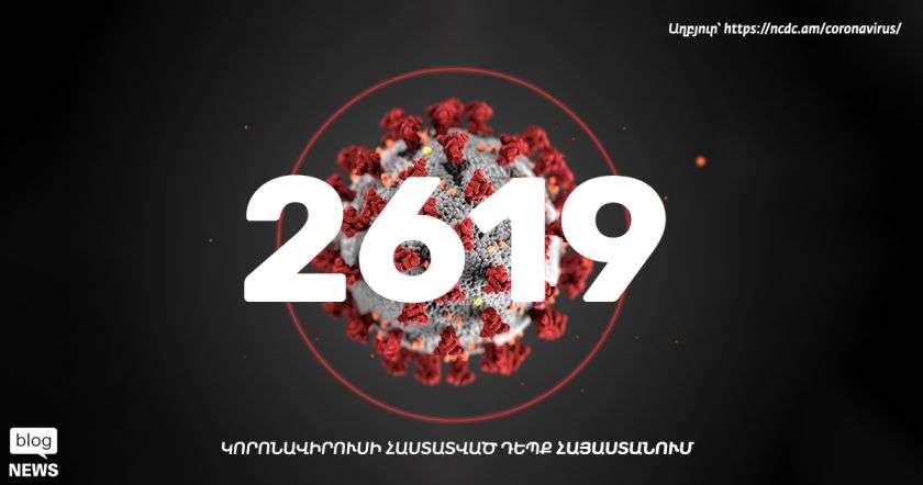 Ըստ ՀՀ ԱՆ Հիվանդությունների վերահսկման և կանխարգելման ազգային կենտրոնի՝ մայիսի 5-ի դրությամբ իրականացված կորոնավիրուսային հիվանդության (COVID-19) թեստավորման արդյունքում Հայաստանում վարակվածների թիվը հասել է 2619-ի, ունենք առողջացման 1111, մահվան՝ 40 դեպք, փաստացի բուժվողները 1462-ն են։