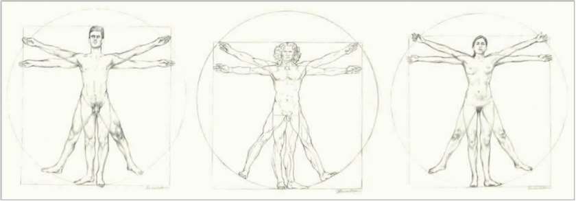 Անտիկ ճարտարագետ Մարկ Վիտրուվիոս Պոլիոնը ճարտարապետության մասին իր տրակտատի երրորդ գրքում նկարագրել է մարդկային մարմնի իդեալական համամասնությունները: Մարդու հասակը, օրինակ, պետք է լինի այնքան, ինչքան որ տարածվում են նրա երկու ձեռքերը՝ ամեն մեկը մի կողմ, ականջների երկարությունը՝ դեմքի երկարության մեկ երրորդի չափով, իսկ պորտը իդեալական մարմնի կենտրոնը պետք է լինի: 15 հարյուրամյակ անց Լեոնարդո դա Վինչին ինքնուրույն չափել է տղամարդու մարմնի համամասնությունները և պատկերել «Վիտրուվյան մարդուն»: