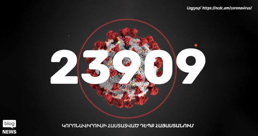 Ընդհանուր առմամբ հունիսի 27-ին հաստատվել է կորոնավիրուսի 23909 դեպք: