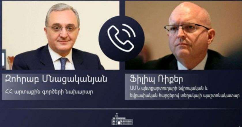 Հունիսի 29-ին տեղի է ունեցել ՀՀ արտաքին գործերի նախարար Զոհրաբ Մնացականյանի հեռախոսազրույցը ԱՄՆ պետքարտուղարի Եվրոպական և Եվրասիական հարցերով տեղակալի պաշտոնակատար Ֆիլիպ Ռիքերի հետ։ Այս մասին տեղեկանում ենք ՀՀ ԱԳՆ-ից։
