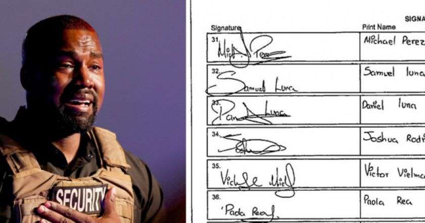 Նոյեմբերին ԱՄՆ-ում կայանալիք նախագահական ընտրություններին որպես անկախ թեկնածու գրանցվելու համար Նյու Ջերսի նահանգում փաստաթղթեր ներկայացրած ռեփեր Քանյե Ուեսթից պահանջված ստորագրությունների մի մասը «թերի» է․ դրանցից շատերը նույն ձեռագիրն ունեն, հայտնում է Daily Mail պարբերականը։