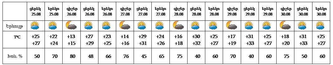 Օդի ջերմաստիճանն օգոստոսի 25-30-ն աստիճանաբար կբարձրանա 3-5 աստիճանով: