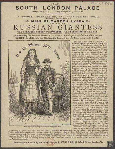 Լրագրողները սկսեցին հետաքրքրվել այս երևույթով: Ինչպես գրում էին «Նիվա» -ի թղթակիցները, Լիզայի մտավոր զարգացումը համապատասխանում էր նրա տարիքին. նա սիրում էր տիկնիկների հետ զբաղվել, խաղում էր գնդակով: Սակայն այդ տարիքում աղջիկը արդեն 130կգ էր և ուներ հասունացած ձայն: