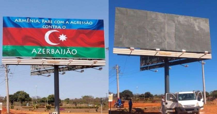 Ի շարունակություն երեկա գրառմանս, տեղեկացնում եմ , որ Բրազիլիայի գյուղերից մեկում գտնվող, պորտուգալերեն այս գովազդային պաստառը՝ որտեղ գրված էր "Հայաստան, կանգնեցրու ագրեսիան Ադրբեջանի դեմ", այսօր առավոտվա դրությամբ արդեն ապամոնտաժված է ։ Ինչի համար խորին շնորհակալությունս եմ հայտնում թէ՜ մեր դիվանագիտական ներկայացուչությանը թէ՜ Բրազիլիայում հայկական 100 հազարանոց համայքին։