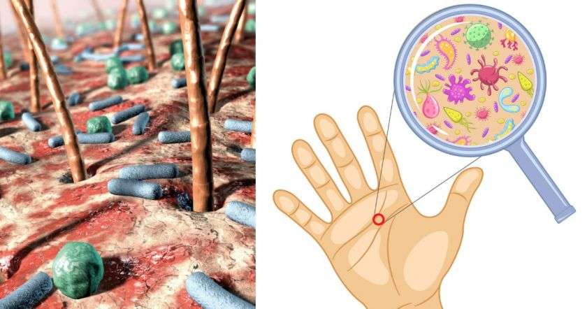 Մաշկը մարդու ամենամեծ օրգանն է, հետևաբար բակտերիաները դրա վրա ևս ամենից շատն են՝ ընդհանուր թվի 20%-ը : Սակայն առանց այդ միկրոօրգանիզմների մաշկը չէր կարողանա մեզ պաշտպանել : Դրանք մարդկային էկոլոգիայի մի մասն են կազմում, որոնցից կախված է ոչ միայն մաշկի առողջությունը, այլև այն, թե ընդհանուր առմամբ ինչ վիճակում կլինի մաշկը : Եվ երբ մենք դիպչում ենք ինչ-որ բանի՝ մեր մաշկի վրա միլիոնավոր բակտերիաներ են հայտնվում : Հենց այդ պատճառով էլ խորհուրդ է տրվում հաճախ լվանալ ձեռքերը, ախտահանել բջջային հեռախոսը և օրվա ընթացքում քիչ դիպչել դեմքին : Բակտերիաները մեզ պաշտպանում են, սակայն երբ վնասակար բակտերիաների քանակը մեծանում է, դա հանգեցնում է մի շարք հիվանդությունների և մաշկային խնդիրների :