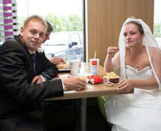 Սթիվեն և Էմիլի Էշերները իրենց և իրենց ընկերների համար բուրգերներ, կարտոֆիլ, հավի կտորներ և կաթնային կոկտեյլներ են պատվիրել: Այս ամենի համար նրանք ծախսել են 150 ֆունտ սթեռլինգ: Արագ սպասարկման ռեստորանի մենեջերը նորապսակներին մեկ շիշ շամպայն է նվիրել, բայց քանի որ McDonalds-ներում ալկոհոլն արգելված է, հյուրերն ու նորապսակներն այն ավելի ուշ են խմել: