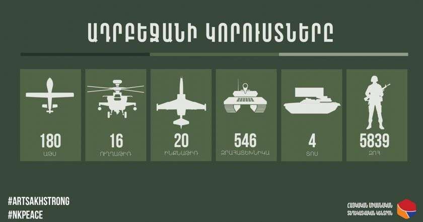 Հակառակորդի կորուստների վերաբերյալ. վերջին տվյալներով՝ խոցվել է ևս 4 ԱԹՍ, 5 զրահատեխնիկա, 1 ինքնաթիռ, կա 350 զոհ: