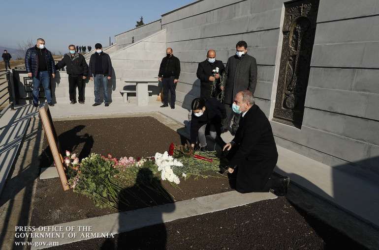 Կառավարության ղեկավարը հարգանքի տուրք է մատուցել արցախյան ազատամարտում իրենց կյանքը Հայրենիքի պաշտպանության համար զոհաբերած հերոսների հիշատակին, ծնկի իջել եւ ծաղիկներ խոնարհել նրանց շիրիմներին։