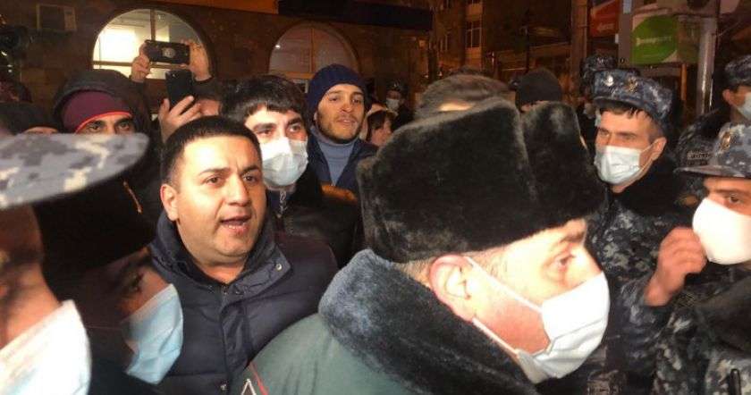 Քիչ առաջ ոստիկանական ուժերն ապօրինաբար բերման ենթարկեցին «Հայրենիք» կուսակցության անդամներ Բաբկեն Հարությունյանին ու Արսեն Նիկողոսյանին, որոնք, ի թիվս այլ քաղաքացիների, մասնակցում էին դավաճան Փաշինյանի հրաժարականի պահանջով անհնազանդության գործողությանը։