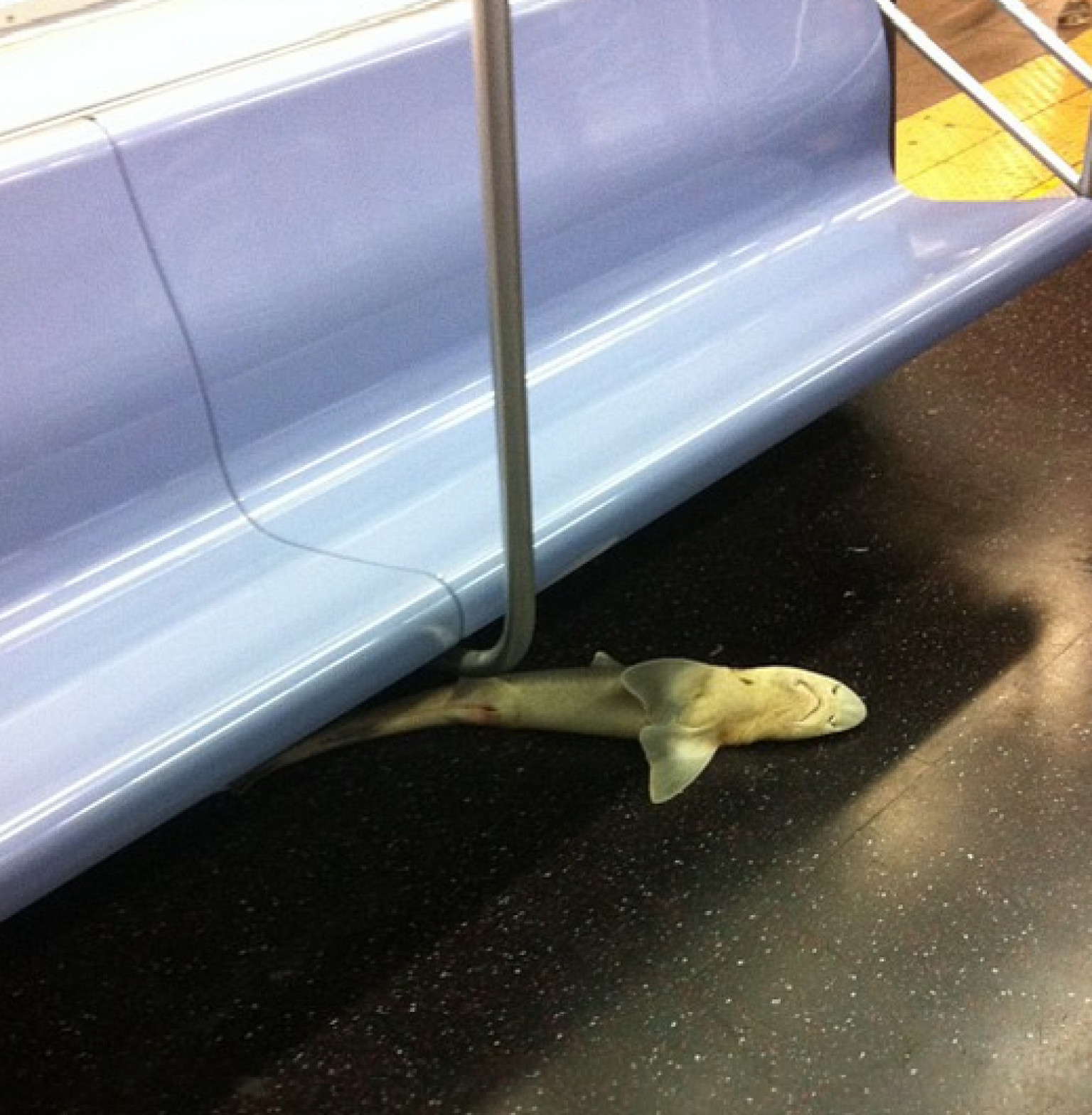 Տարօրինակ է, չէ՞: Ի՞նչ գործ ունի շնաձուկը գնացքի վագոնում: «New York Post»-ը հաղորդում է, որ մի քանի երեխա գտել են շնաձկանը, երբ լողալիս են եղել Բրուքլինի Քոնի կղզում: Այն ի վերջո հայտնվել է 31-ամյա Քրիս Լանդրոսի մոտ: Շնաձուկը նրան գեղեցիկ է թվացել, և նա որոշել է այն իր հետ տուն տանել: Սակայն այնպես է ստացվել, որ նա գնացքում է թողել շնաձկանը: Երբ Ալիսիա Վիչինոն` այն երեխաների մայրը, ովքեր առաջինը գտան շնաձկանը, տեսավ լուսանկարները ինտերնետում, նա հաստատեց, որ դա նույն շնաձուկն է: