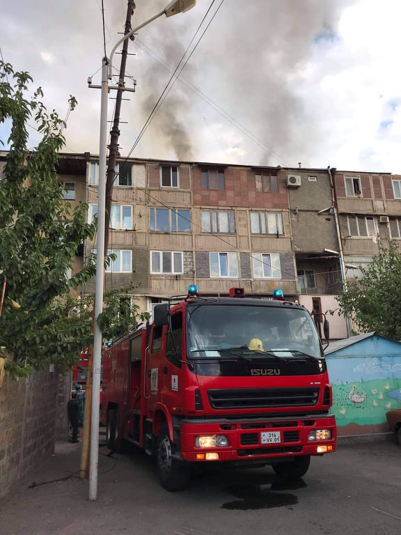 Հուլիսի 19-ին, ժամը 18։48-ին Ճգնաժամային կառավարման ազգային կենտրոն ահազանգ է ստացվել, որ Երևանի Էրեբունի փողոցում այրվում է հինգ հարկանի շենքի տանիք։ Այս մասին տեղեկացնում է ԱԻՆ-ը: